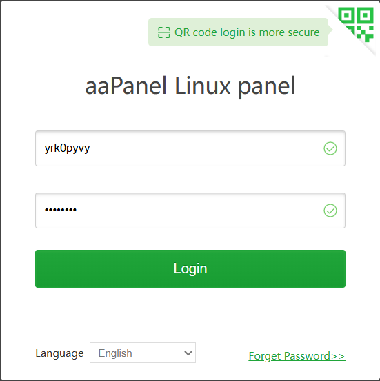 Buka browser dan akses aaPanel menggunakan URL yang ada di informasi login, Login dengan username dan password yang diberikan saat install.